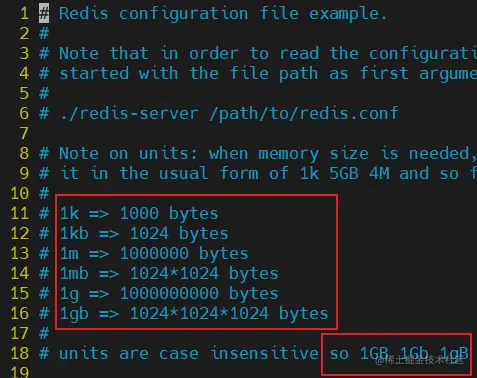 redis 里面单位是不分大小写的,例如,1GB 1Gb 1gB 表示的都是同一个意思