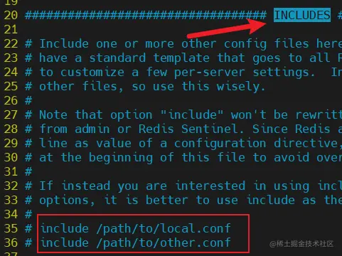 环境中使用的 redis.conf 可以包含其他的 redis.conf,他们会整合成一个 配置文件来提供使用