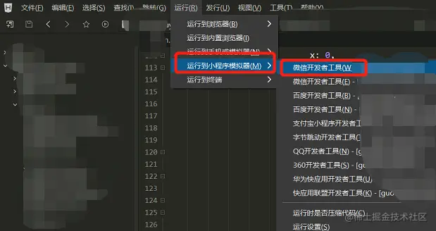 1、才想起来没有写如何运行项目,先选择运行,运行到小程序模拟器,微信开发者工具,然后打开小程序开发者工具即可。每次保存页面都会触发小程序开发工具更新。