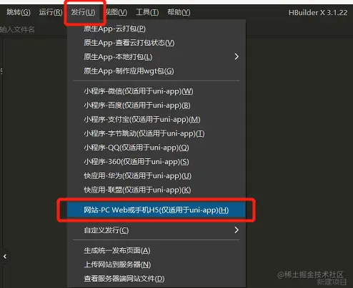 2、如果是公众号类型,必须要进行发行,选择网站-PC-Web或手机H5,最后在文件夹内项目名\unpackage\dist\build\h5,然后发到服务器上,再到微信开发工具改为公众号调试的模式,地址栏输入页面地址,只能访问线上的,就比较麻烦,所以调接口要多打印一些文件,最好先在小程序上调完了,然后在到微信运行H5看看哪里有问题再改,最好是先调好一个平台再优化另一个平台。