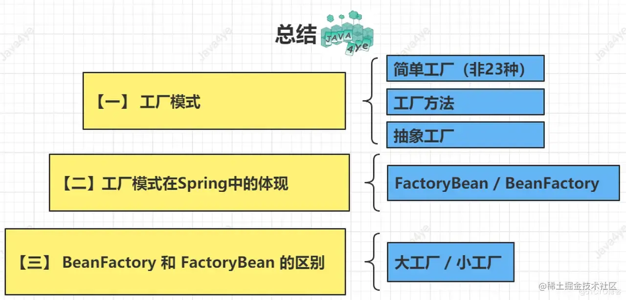BeanFactory是一个大工厂,是IOC容器的根基,有繁琐的bean生命周期处理过程,可以生成出各种各样的BeanFactoryBean是一个小工厂,它自己也是一个Bean,但是可以生成其他Bean