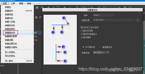 创建也很简单点击资源->新建滑动条按照提示添加即可