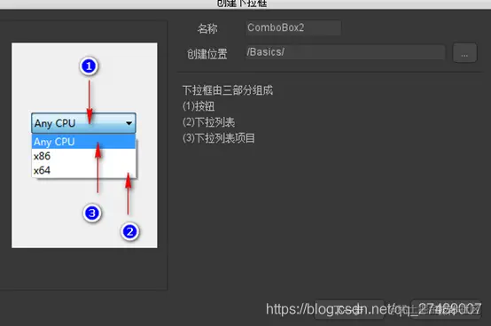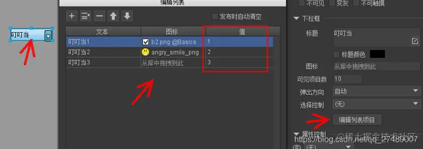 Item是下拉框内容item,双击进去后还可以自定义里面的内容