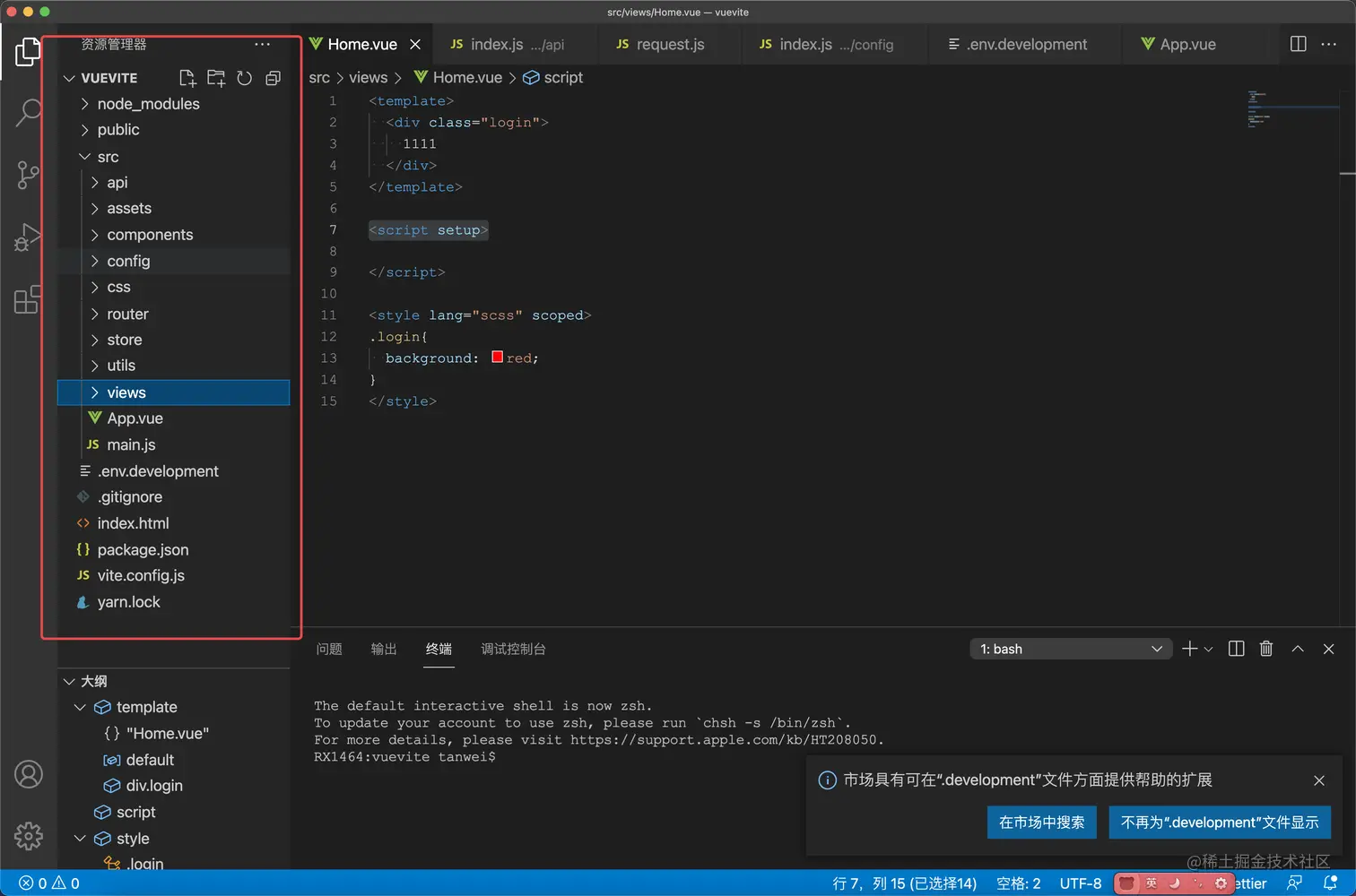 项目启动后就会默认加载.env.development