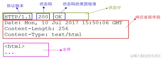 状态行 —— 包含表明响应结果的状态码、原因短语和 HTTP 版本。