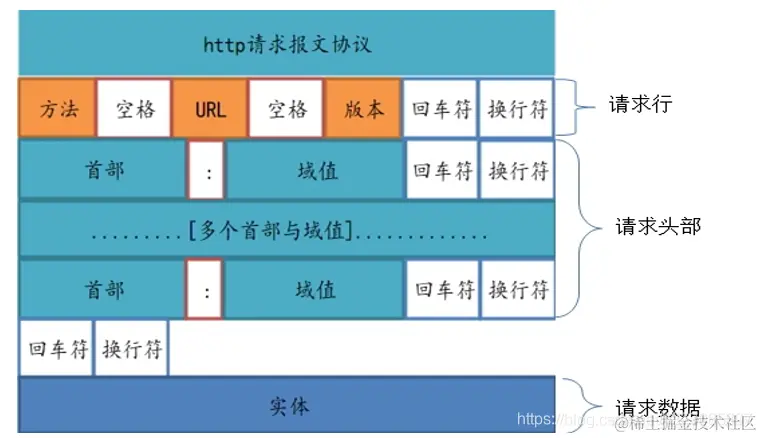 请求报文的首部内容由以下数据组成: