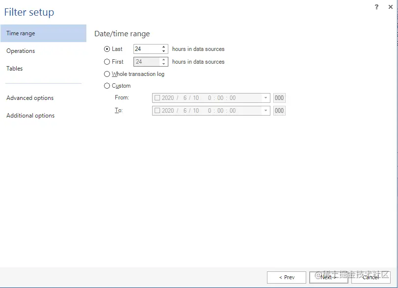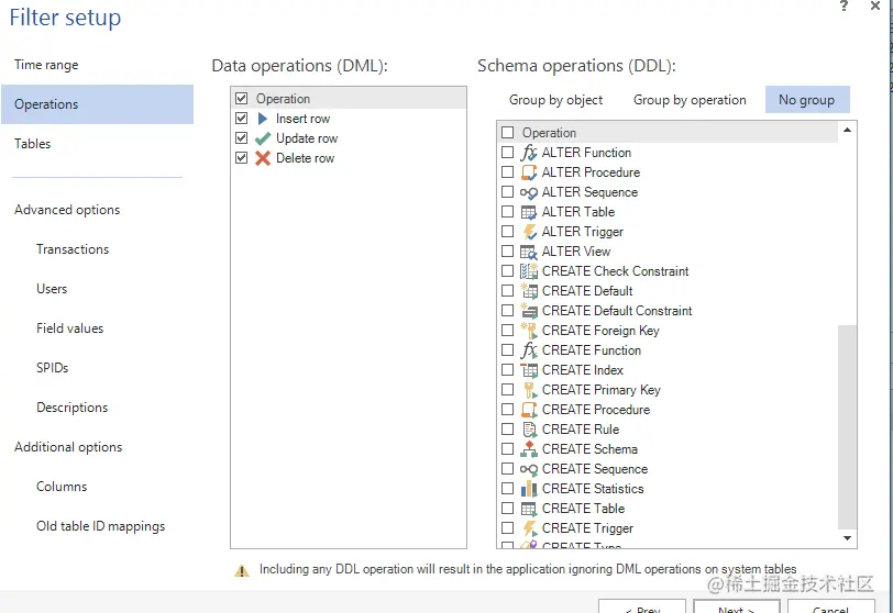可以选择时间段(Time range)、操作(operations)、表(tables)。