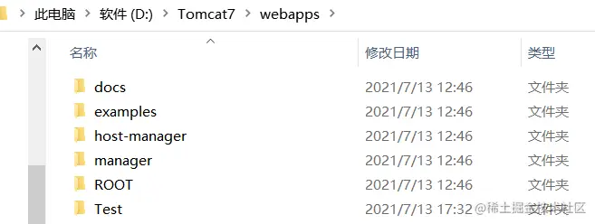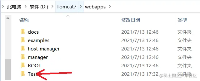 在 webapps 目录下创建一个 Test 工程