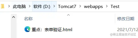 此时要访问 Test工程(即Test文件夹),直接在 地址后加文件名称 http://localhost:8080/Test/重点:表单验证.html