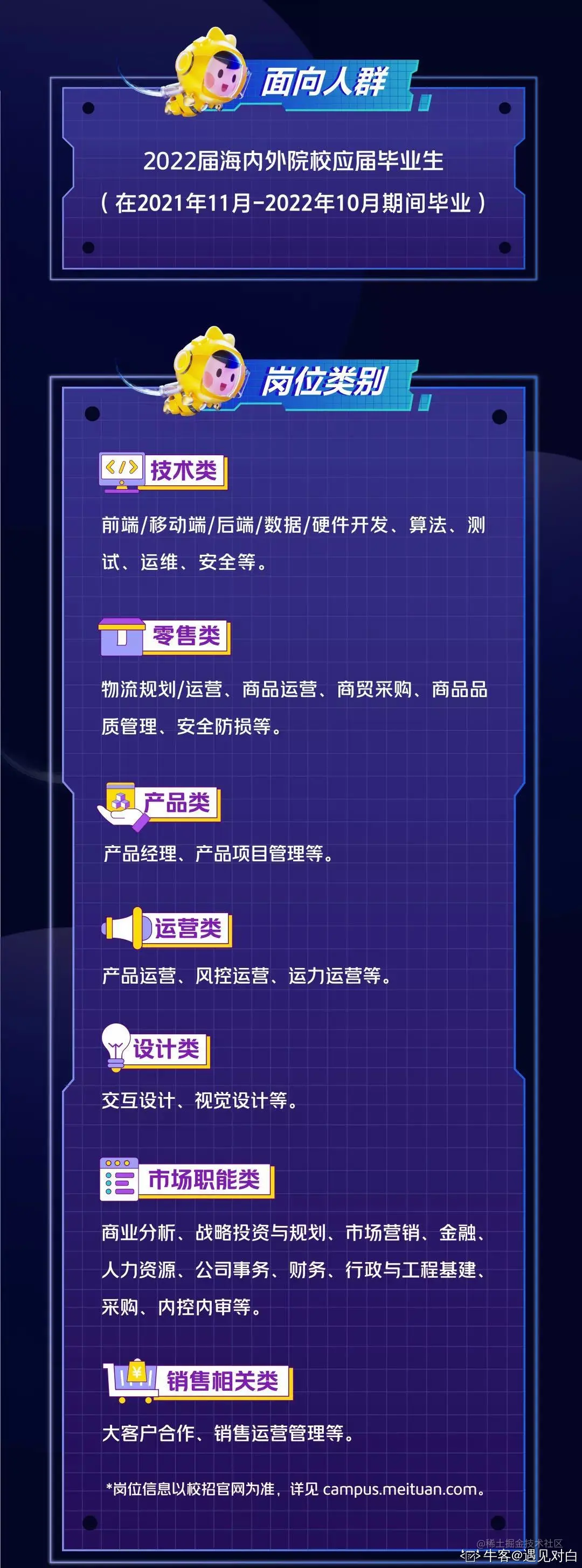 面向2022届应届生,毕业时间要求为2021年11月-2022年10月毕业的国内外院校应届毕业生;