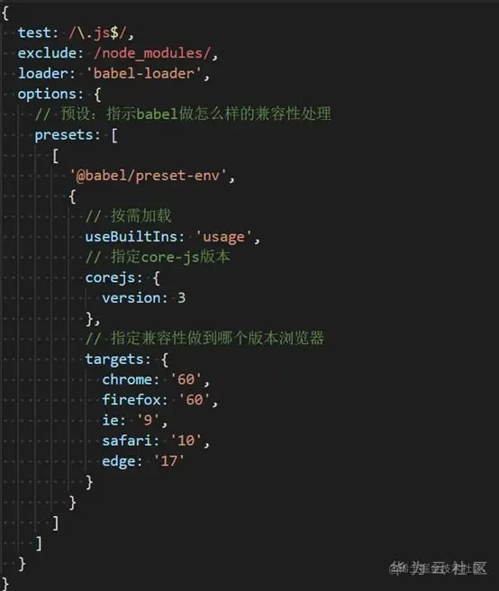 1.下载babel-loader、@babel/core、@babel/preset-env,通过@babel/preset-env做基本的js兼容性处理,然后通过corejs做前面无法实现的兼容性处理,并实现按需加载