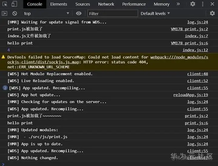 修改print.js文件后,只会重新加载print.js文件,而不会重新加载index.js文件,HMR效果如图4-3所示。