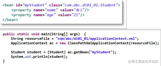 代码通过getBean()方式从容器获取指定的 Bean实例,容器首先会调用Bean类的无参构造器,创建空值的实例对象。