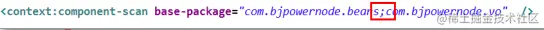 但不建议使用顶级的父包,扫描的路径比较多,导致容器启动时间变慢。指定到目标包和合适的。也就是注解所在包全路径。例如注解的类在 com.bjpowernode.beans 包中