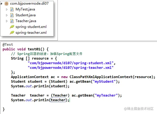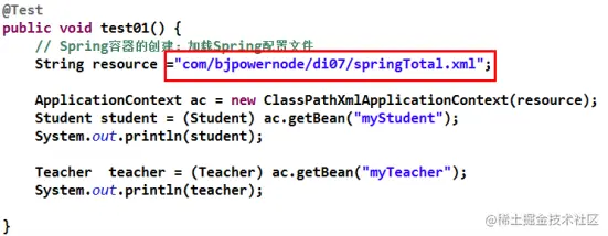 各配置文件中有一个总文件,总配置文件将各其它子文件通过引入。在 Java代码中只需要使用总配置文件对容器进行初始化即可。