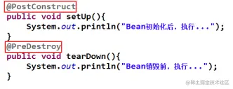 在方法上使用@PostConstruct 与原来的 init-method 等效。在方法上使用@PreDestroy,与 destroy-method 等效。