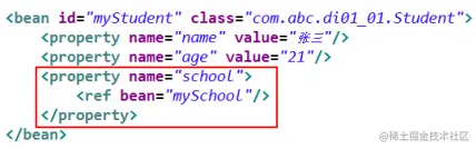 对于其它 Bean 对象的引用,除了标签的 ref 属性外,还可以使用标签。