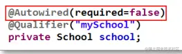 需要在引用属性上联合使用注解@Autowired 与@Qualifier。@Qualifier 的 value 属性用于指定要匹配的 Bean 的 id 值。同样类中无需 setter,也可加到 setter 上。