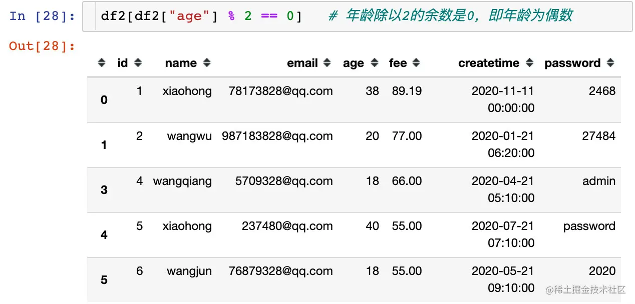 select * from user where age % 2 = 0;