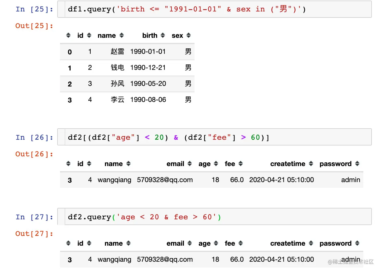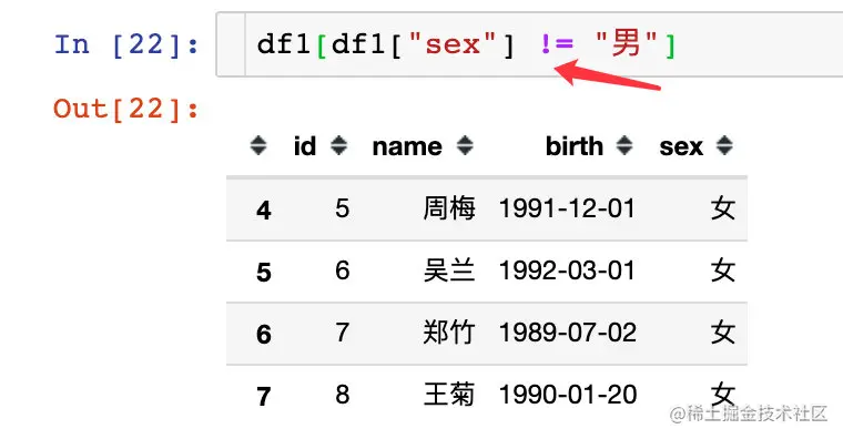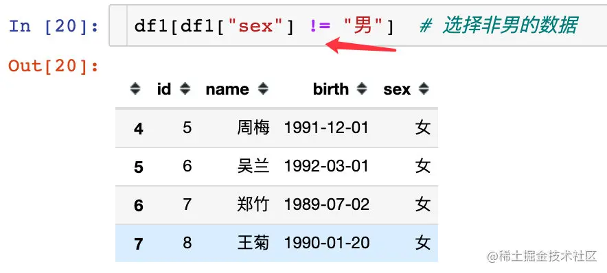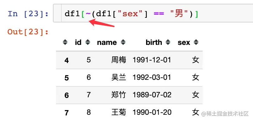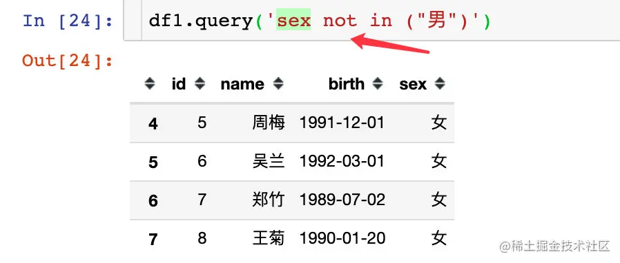 df1.query('sex=="男"') # 方式2