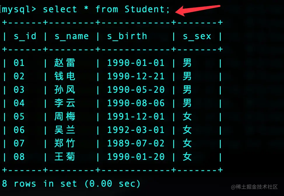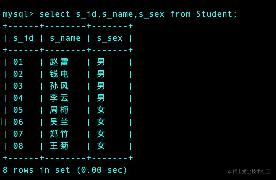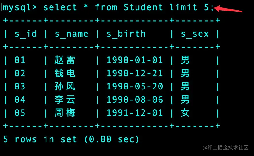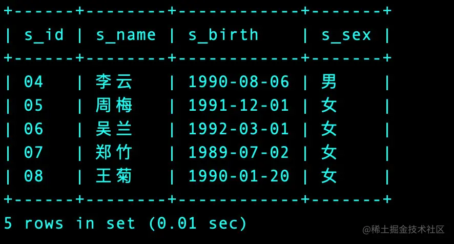 | 01 | 赵雷 | 1990-01-01 | 男 |