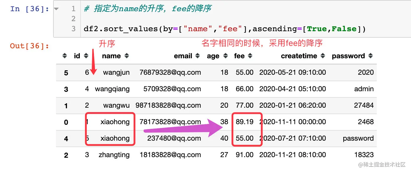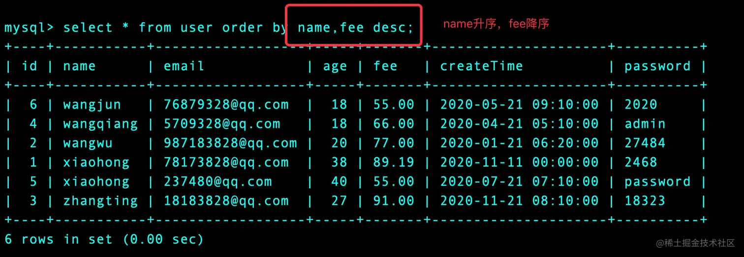 2、多个字段的排序