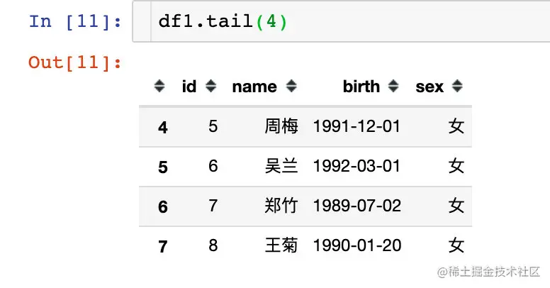 | 08 | 王菊 | 1990-01-20 | 女 |