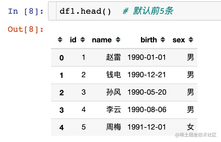 查看前5条数据: