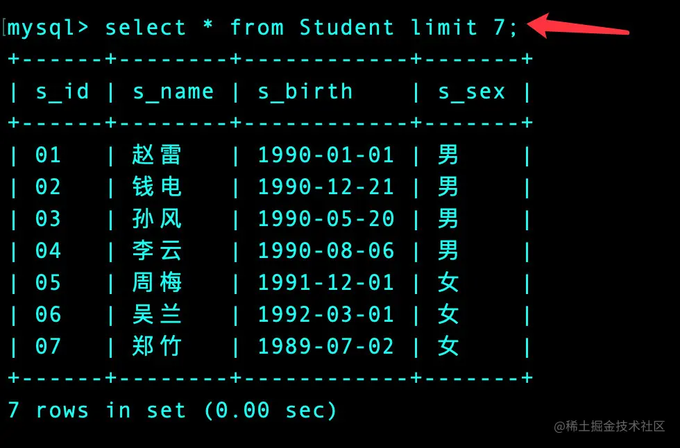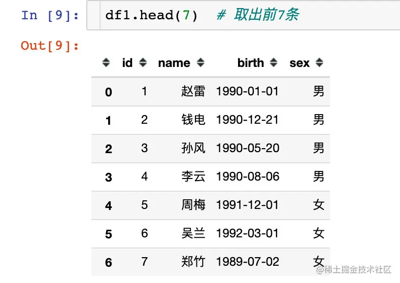 指定查看前7条数据: