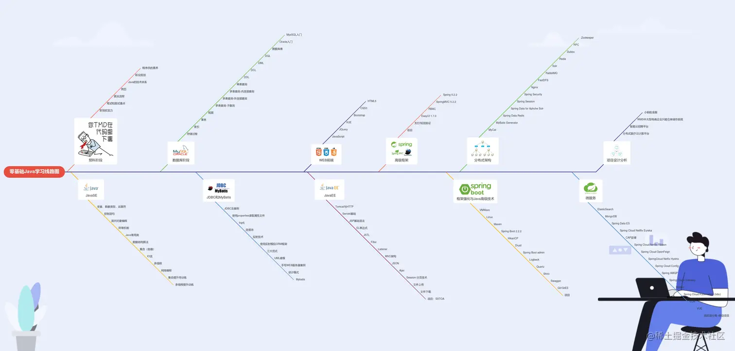 最后给大家看一下java的学习路线图来感受一下程序员的不易