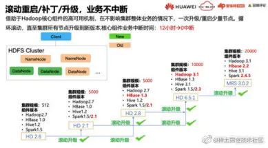 滚动升级的策略可实现集群节点一个一个滚动分时升级,逐步将所有节点全部升级成最新的版本。但是开源的社区跨大版本并不保证接口的兼容性,会导致新老版本无法升级。因此我们研发了很多的能力以保证所有版本之间都能滚动升级。从最早的 Hadoop 版本一直到 Hadoop3,所有的组件我们都能保证滚动升级。这也是大集群的必备能力。