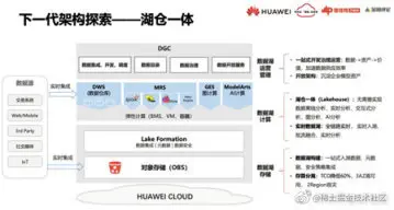 数据的底座构建好之后,数据分析服务如大数据的服务、数仓的服务、图计算、AI 计算都是在同样的一个数据视图上进行计算处理。数仓 DWS 的服务本质是本地存储,数仓也可以通过它的一个引擎访问 Lakehouse 中的数据。这样数仓自己在本地有一个加速的数据层,同时也可以访问 Lakehouse。