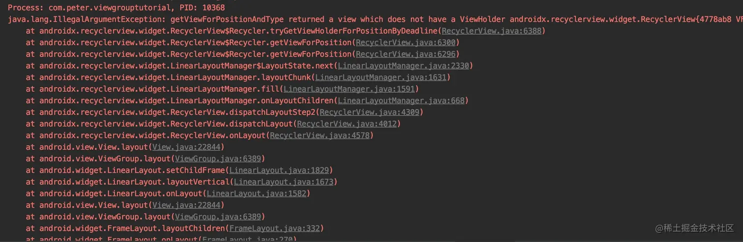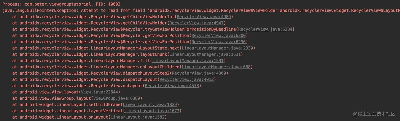 空指针异常。解决方案:为itemView设置RecyclerView.LayoutParems。