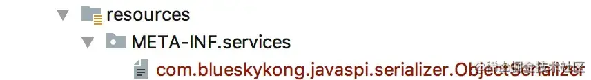 Resource下面创建META-INF/services 目录里创建一个以服务接口命名的文件
