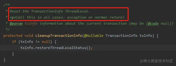 另外,我不得不多说一句 Spring 在事务这块的源码写的非常的清晰易懂,看起来基本上没有什么障碍。