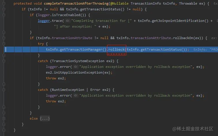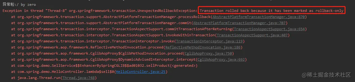 在这里,把链接的 rollbackOnly 置为了 true。