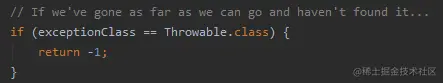 异常类,最远的地方就是 Throwable.class。没匹配上,就返回 -1。