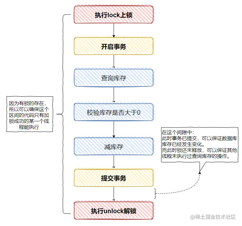 要保证一定不能出现超卖的情况,那么就需要事务的开启与提交能完整的包裹在 lock 与 unlock之间。