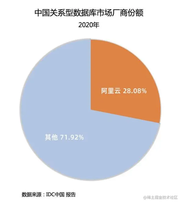 日前,权威市场调研机构IDC发布2020年中国关系型数据库市场研究报告,阿里云以超过28%的市场份额,力压传统数据库厂商,行业排名领先。其中,在云关系型数据库市场上,阿里云以绝对优势领跑,市场份额超过第2至7位的总和。