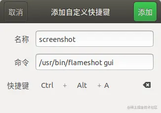 依次进入 设置 -> 设备 -> 键盘 ,然后滑到最底端会有一个 + 按钮,点击 + 添加自定义快捷键,并设置名称和命令,然后点击右上角添加就可以设置自己想要的截图快捷键,比如我设置的是 Ctrl + Alt + A,如下图所示;