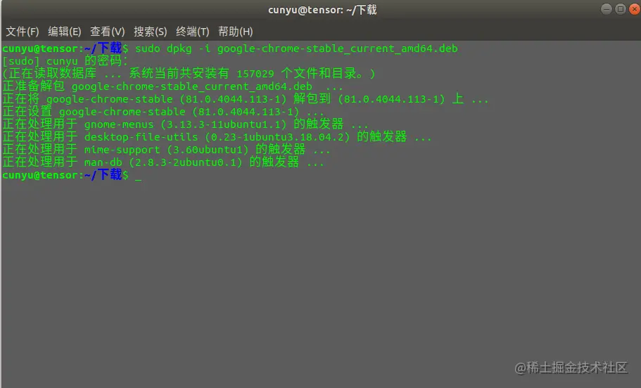 去官网 下载 对应安装包,然后在终端使用如下命令安装;