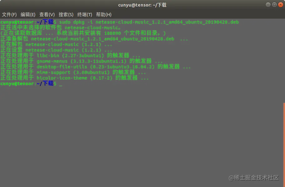 sudo dpkg -i netease-cloud-music_1.2.1_amd64_ubuntu_20190428.deb