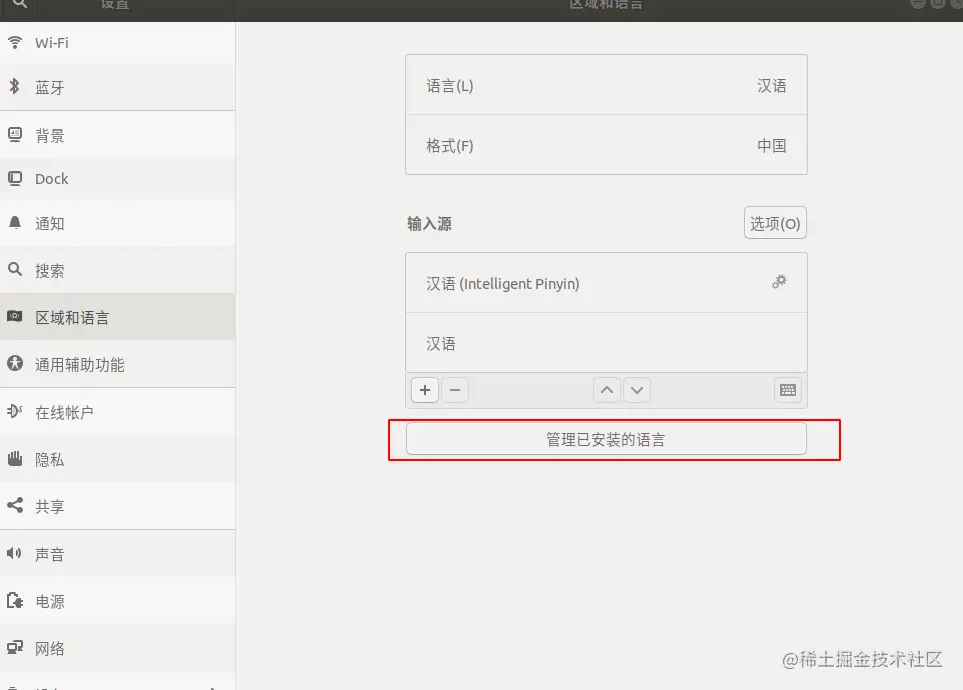 接着到 设置 - > 区域和语言 点击已安装的语言;
