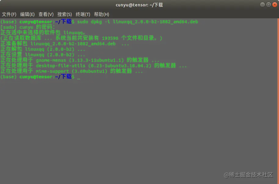 sudo dpkg -i linuxqq_2.0.0-b2-1082_amd64.deb