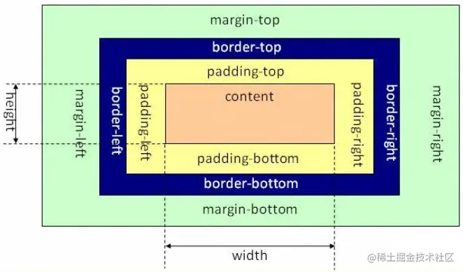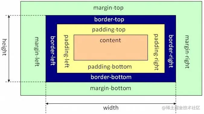 CSS盒子模型组成:外边距(margin)、边框(border)、内边距(padding)、内容(content)