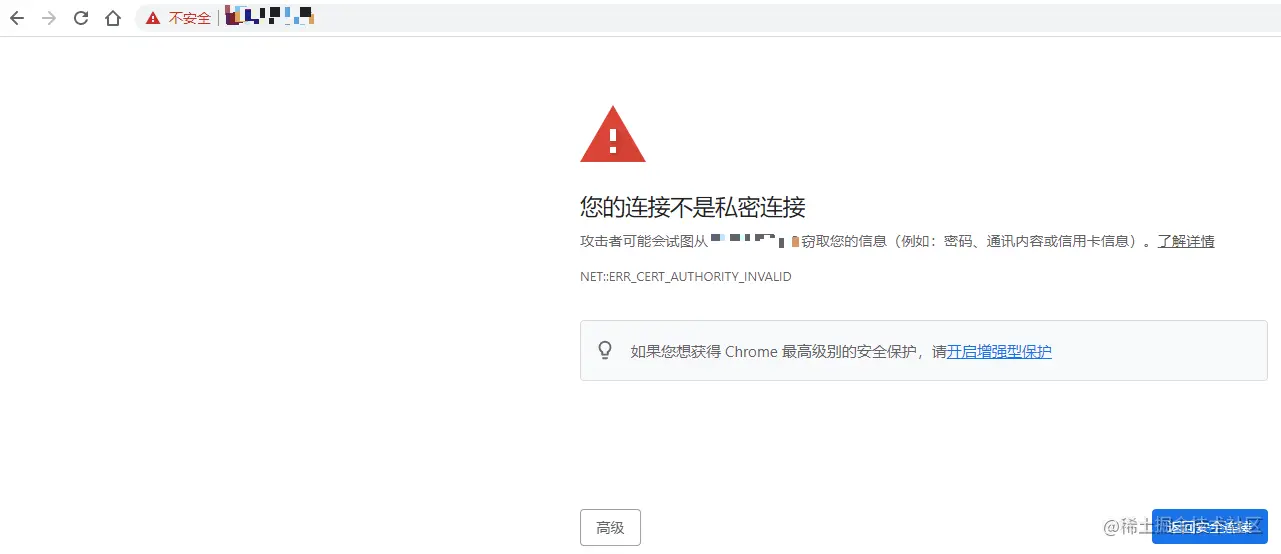 我们看到,nginx 的 https 已经搞定。点击高级,继续前往: