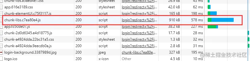 从图片中可以看出,首屏的加载时间提升了很多,从5.55s提升到了578ms,这个优化是两方面的,前端将文件打包成.gz文件,然后通过nginx的配置,让浏览器直接解析.gz文件。