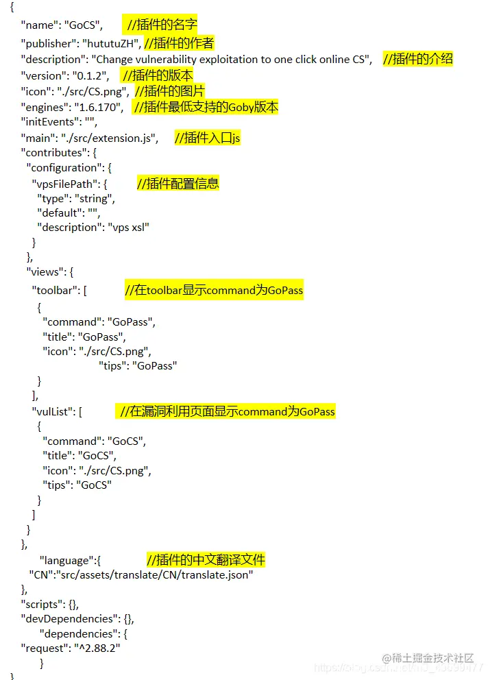 具体注释在源代码中,在 Goby 中下载 GoCS 后可在根目录下 \extensions 中找到,这只分析重点。