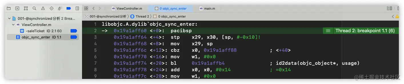 @synchronized处打断点,然后查看汇编的方式进行定位objc_sync_enter;